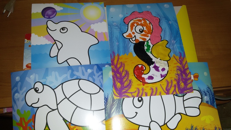 люблю мягкий пластилин и тесто. Уже начали раскрашивать морского конька. второй раз беру раскраски пластилином этой серии