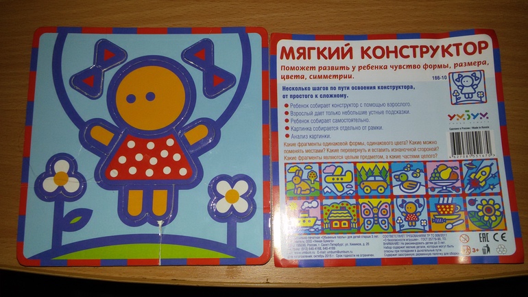 тоже мягкий конструктор, дочке понравился, но вот сверху наклеена бумага, поэтому сразу помялась, а дочь еще и сгибает...В общем надо играть аккуратно