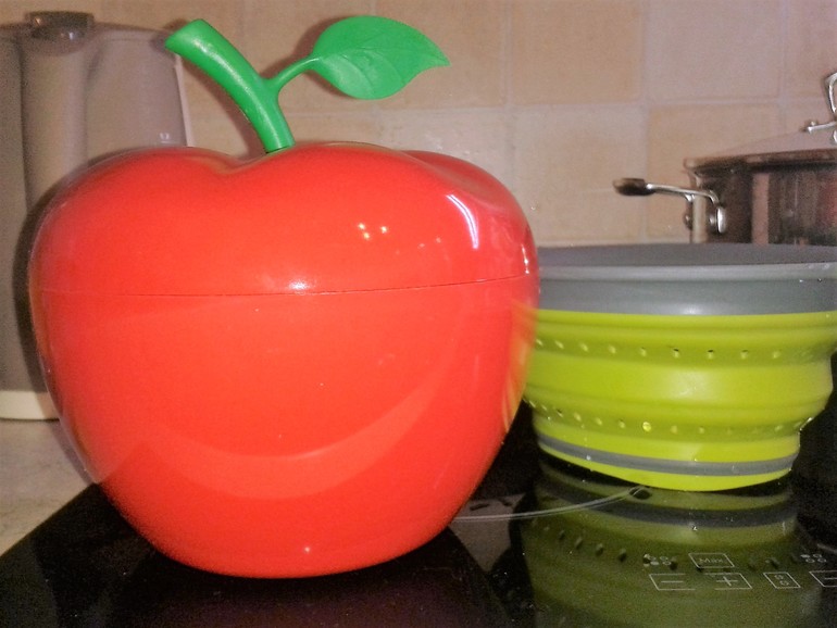 Складывается легко, вода быстро стекает. Для ягоды самое то, а для макарон маловат. Очень довольна. Также вазочка в виде яблочка. Очень вместительная. То же довольна.