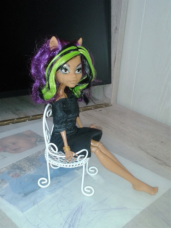 Металлический круглый мини-стул захотелось красивый стульчик для кукол. Симпатичный, но ножки низковаты для кукол типа Барби и Монстер хай.