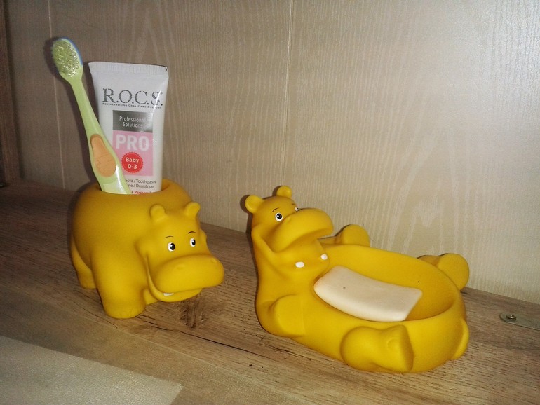 В ванну купили для малой такой Набор "Бегемотики". Резина не пахнет очень симпатичные бегемотики. Мыльница для маленького мыла.