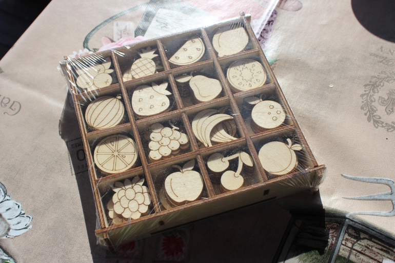 Набор украшений в коробке "Фрукты". У меня сынок очень любит все раскладывать и сортировать. От набора в восторге! К тому же, это его любимая продуктовая тема. Все детальки аккуратные, без зазубрин. Решили, что пока раскрашивать их не будем ).