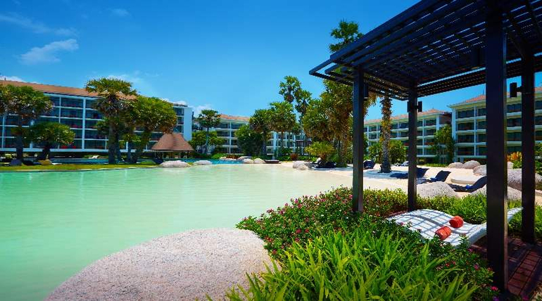 Гости отеля могут расслабиться в просторных бассейнах, отдохнуть в гамаках и на пуфиках в тени сада, прогуляться по большой территории, которая вечером превращается в яркий фонтан огней. Для маленьких гостей есть детский бассейн, а также кроватка и стульчики в ресторане.