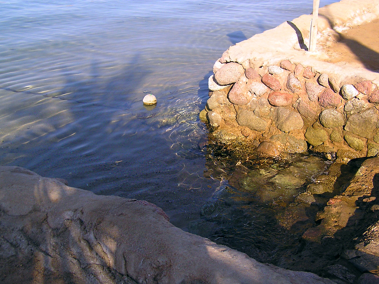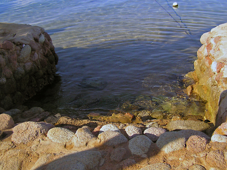 Но заход без ступенек все же есть - два маленьких треугольничка по обеим сторонам мостика. Там мы с дочкой и дислоцировались. После того, как летом она со скандалом и истерикой игнорировала и море, и бассейн, я опасалась ее реакции. Но она сразу и безоговорочно приняла море, плескалась в воде, сидела возилась с песком, сама набирала в ведерко воду, в общем, радовалась жизни). Ну а моему материнскому сердцу больше и нужно).