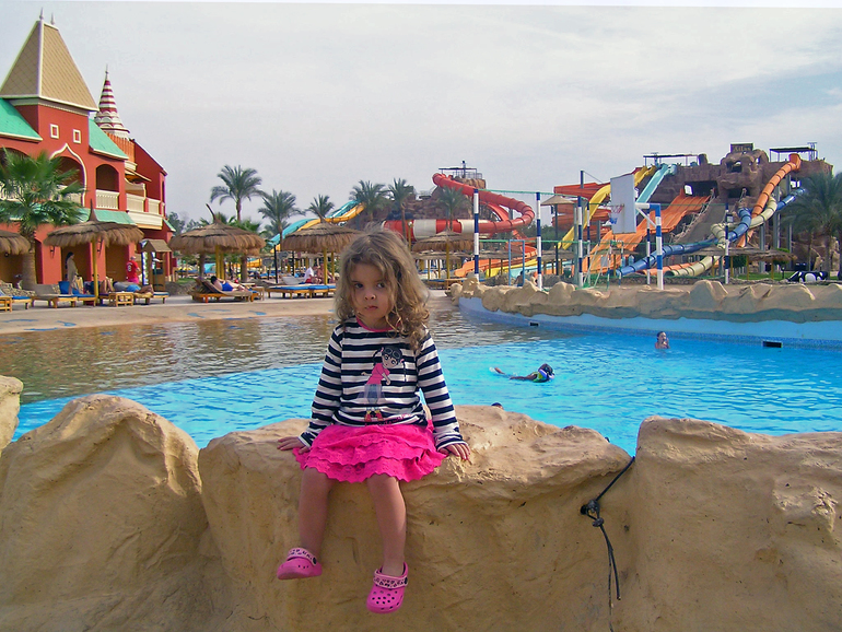 Так что сына я отправляла колбаситься на больших, а с дочкой возилась у маленьких. Все бассейны с маленькими горками отапливаются. И, хоть с погодой нам повезло и мы спокойно купались в море, в неотапливаемых бассейнах маленькому ребенку было бы холодно.