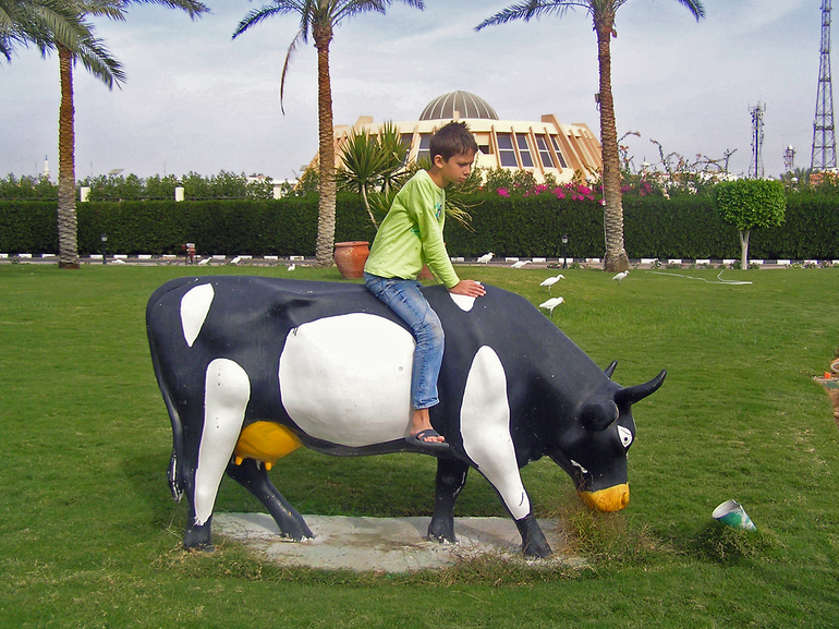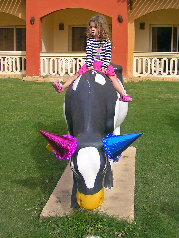 Не знаю, как это стыкуется с общей концепцией), но по всей территории расставлены вот такие коровы: