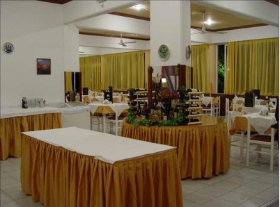 Сдоба в виде: кексов и печенья, так же есть сладости.Предлагаются свежие овощи: свежие помидоры, перец, огурцы и как приправа оливковое масло. 3 вида хлопьев с молоком, 1 вид каши ( чаще всего овсяная), сыр, ветчина, хлеб, масло, джем мед, йогурт. Кофе готовит кофемашина несколько видов от латте до мокко. Яйца вареные и тп. Так же можно договориться с поваром для маленьких детей готовить супы. Но по оплате или бесплатно - это уже как договоритесь.. Можно договориться готовить на заказ и др блюда для детей. Возможность такая есть. Персонал отзывчивый и внимательный.