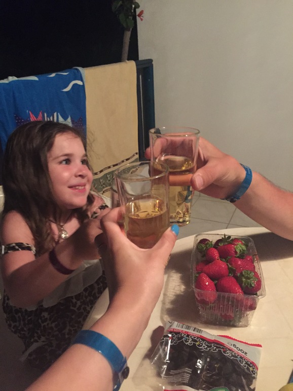Мы с мужем устроили как-то вечер греческих вин-она непременно решила сидеть с нами, но долго не смогла-дискотеки так изматывают))