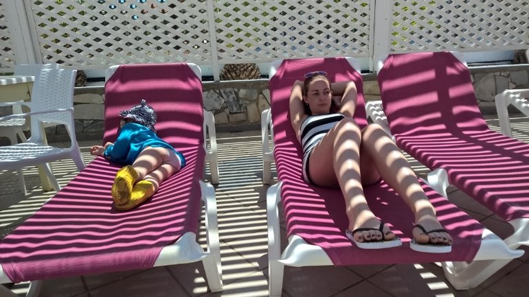 После обеда я шла на пляж, а муж укатывал Ксю на коляске(да, мы брали с собой коляску и я ни на секунду не пожалела, а была безумно счастлива ее наличию в такие моменты, а особенно в аэропорту, ну и папина шея отдыхала на длинных прогулках)