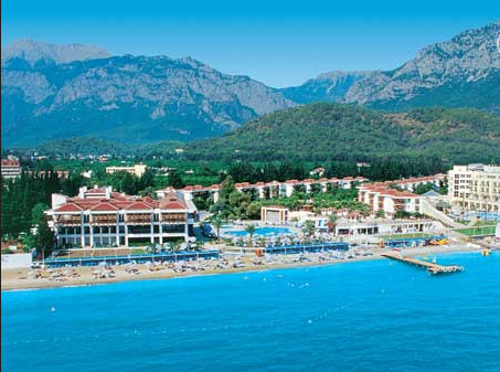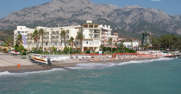 Отель расположен в 65 км от аэропорта г. Анталии, в г. Кемере, на самом берегу моря. Рядом с отелем есть городской парк,почта, аптека