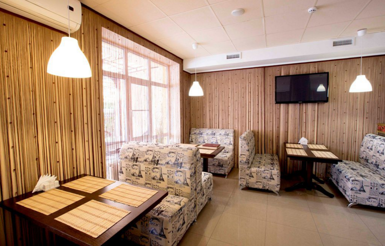 В ресторане представлен широкий выбор блюд на любой вкус. Гостей отеля приятно удивит разнообразие салатов, горячих и холодных закусок, первых и вторых блюд, вкуснейшая выпечка и сезонные фрукты, широкий ассортимент напитков - соки, воды, чай и кофе. Для самых маленьких гостей - детское меню, в которое входят молочные каши, бульоны, молоко, йогурты и любимые детские блюда. На завтрак для гостей ресторана - яичница открытого приготовления, на обед и ужин - разливное пиво и кубанские вина.