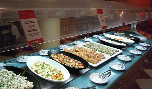 Предлагает большой выбор блюд. Мы предлагаем вам мясо и рыбу, приготовленные на нашей открытой кухне, свежую зелень, паэлью и большой выбор десертов. Вы насладитесь вкусом наших блюд и сможете взять столько порций, сколько захотите.