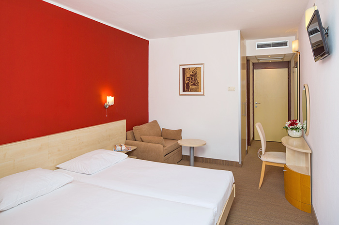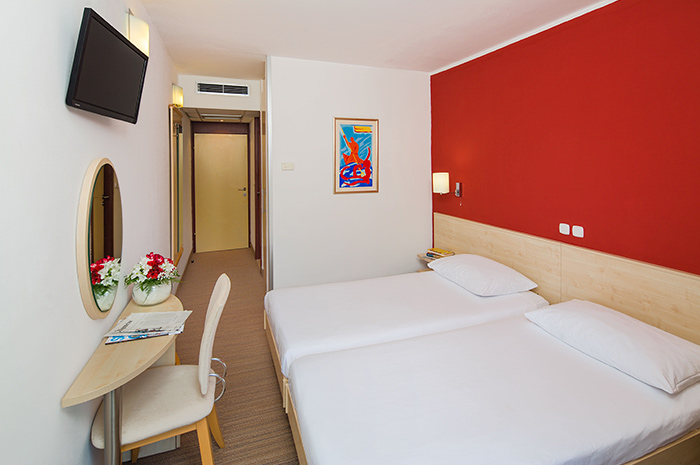Среди стандартных номеров с видом на парк, Вы можете выбрать двухместный номер с соединенными кроватями (с балконом или без) или двухместный номер с балконом и раскладным диваном для размещения максимально 3-х человек. Все номера отеля оснащены телефоном, ЖК-телевизором со спутниковыми каналами, феном для волос и сушилкой для белья.