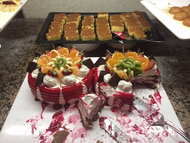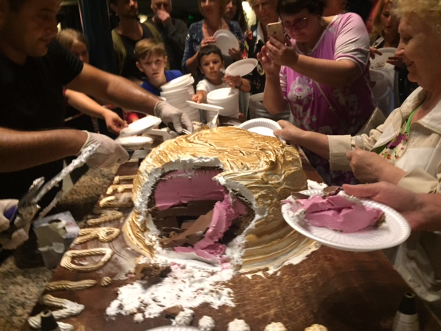 Вечером один раз вечером в перерыв между отделениями живого выступления ( об этом позже) вынесли под музыку и с факелами торт мороженное! Прекрасно и вкусно!