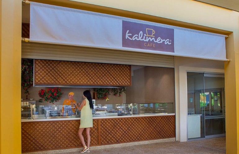 "Сладкий угол" предлагает широкий выбор блинчики, вафли, мороженое и другие десерты, а в кафе "Калимера" сладости на завтрак и обед.