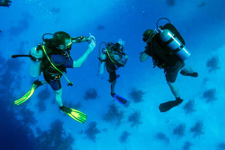 В Ольгине рядом с берегом проходит второй по величине коралловый риф в мире. На пляже Гвардалавака имеется два центра подводного плавания: один - на Playa Esmeralda ("Sea Lovers"), другой - на Playa Guardalavaca ("Eagle Ray"). Подводный рельеф здесь достаточно сложный, образованный высокими холмами, пещерами, небольшими долинами и скалами с отвесными стенами. Иногда дно полого спускается, образуя террасы, покрытые кораллами, с типично карибским рифом мелкой акватории. Это место, называемое Коралловым Садом, несомненно, одно из наиболее выдающихся точек для погружения в этом районе.