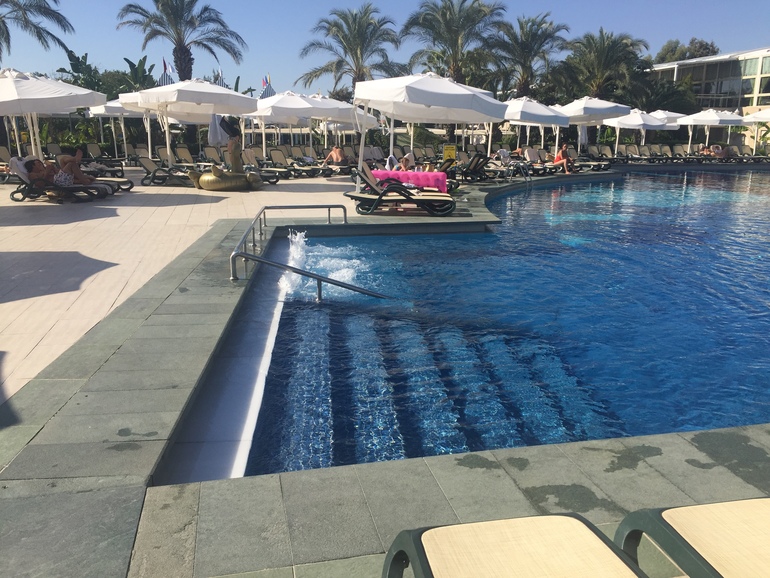 А так как я была в этом отеле не одна, то мы этот момент с Ириной так же обсудили. На мой взгляд, там как раз можно больше всего заразы и схватить.. Тем более покрытие его оставляет желать лучшего. Песок на дне бассейна у меня вызывает брезгливость.. В отличие от больших, где точно есть циркуляция и очистка, условия очищения бассейна на пляже я не знаю.