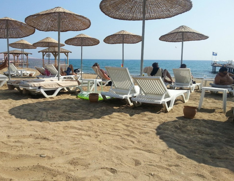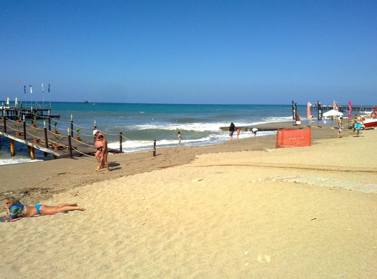 Дорога до пляжа 100 метров, пляж собственный, лежаков хватает всем. Есть бар на пляже. Детская площадка тоже для деток есть. В море с мая спокойно все купались в том году с детьми.. В этом году уже купаются люди:) Но из за природной плиты, вход в море не очень удобный ( это природная особенность этой местности и отель в этом не виноват), но немного пройти вправо есть хороший пологий вход.