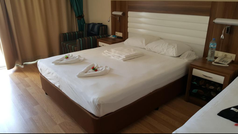 Среди двухсот пятидесяти комнат в двух соединенных переходом высотных корпусах большая часть - стандартные, не очень большой площади, рассчитанные максимум на трех человек, с ортопедической двуспальной и дополнительной односпальной кроватями в каждой. Семейные покои, боле просторные, состоят из двух отдельных двухместных спальных помещений. Простой, но приятный глазу дизайн выдержан в современном пляжном стиле. Во всех без исключения жилых помещениях работают кондиционеры, номера оснащены телефонами прямой связи, в жилых зонах и ванных, одним или двумя LCD-телевизорами, мини-барами, сейфами. С балконов открываются виды на море или гостиничную территорию. Беспроводной интернет бесплатно доступен повсюду в пределах отеля.