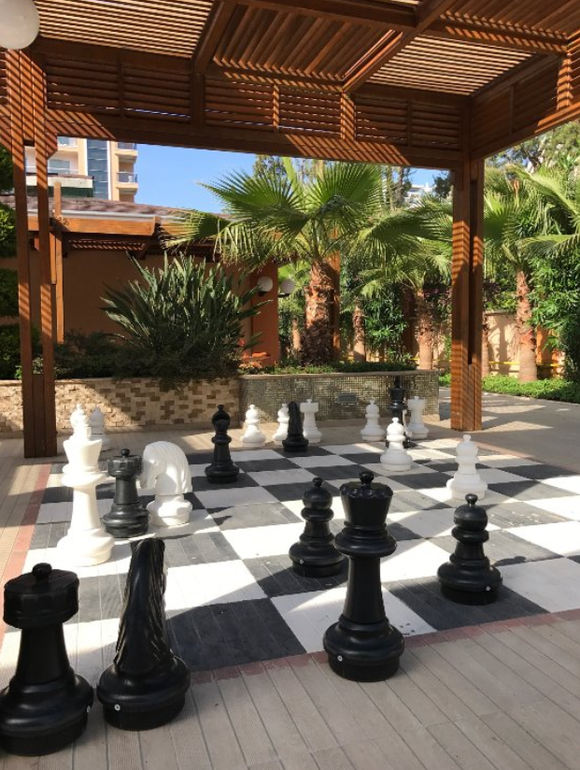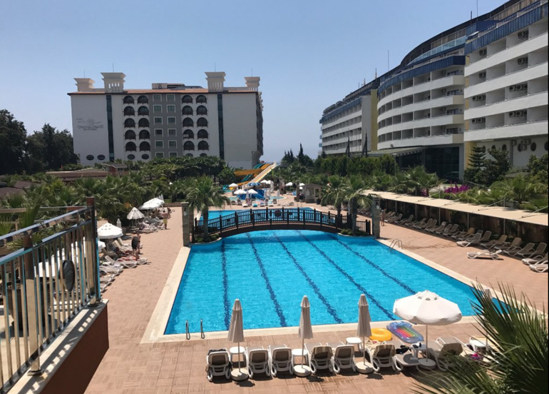 Территория отеля маленькая, но красивая, уютная и продуманная. Три бассейна: один глубокий, один с горками и третий детский. Возле бассейнов есть бар со спиртным.