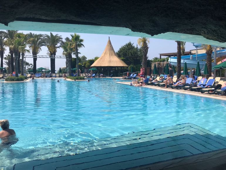 Что касается вопроса купания. Сейчас все плавают в бассейнах и в море.. Подогреваемый бассейн в отеле есть! Работает круглый год и он на улице. В него несколько входом и один со стороны грота..