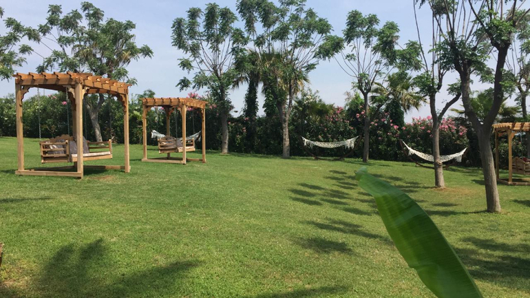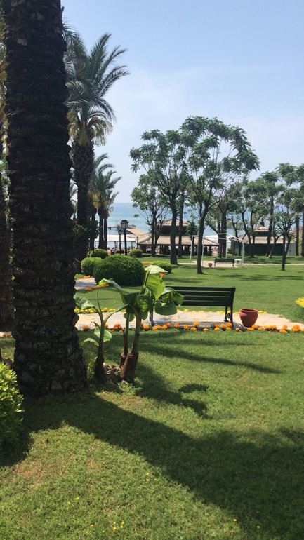 Отель действительно, уютный компактный.. Мне показалось, что он более зеленый, тк спуск к пляжу, это изобилие зелени в виде красивого газона с вплетением в него цветочных скульптур, гамаков и качелей, деревьев и пальм.. Глаз радуется!