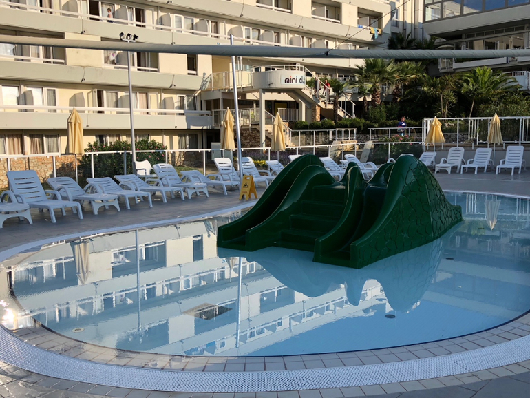 А теперь новый аквапарк для малышей, который доделали в июне этого года и уже запустили в эксплуатацию! Во второй половине дня эта сторона отеля всегда под солнцем и визг стоит до 18 вечера, а то и до 18:20.. Ужин с 18:30