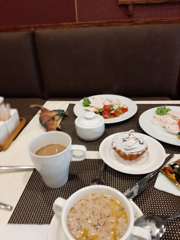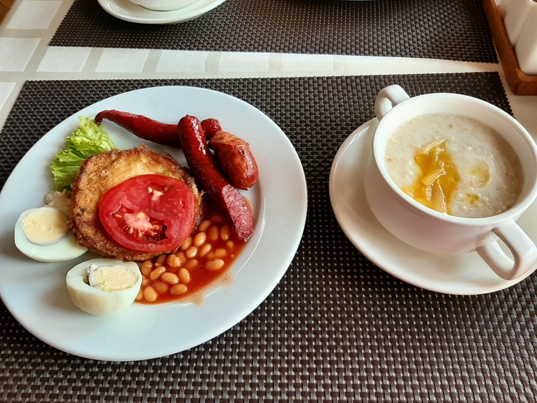 Завтрак у нас был включён. Кормили на убой: каша, второе блюдо (например куриная грудка с салатом, или омлет с овощами), выпечка и чай, кофе, компот, хлеб, масло, джем - шведский стол.