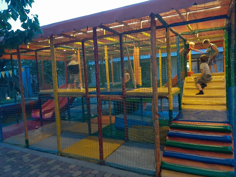 На территории площадка и лабиринт из матов (не знаю как ещё это назвать))).