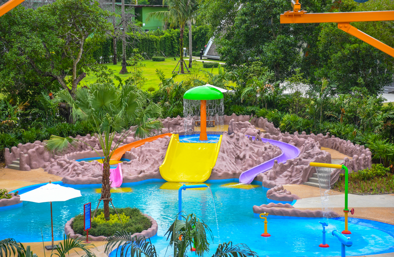 Аквапарк Splash Jungle Waterpark - 5 горок для взрослых и 2 горки для детей, часы работы с 10:00-17:30.