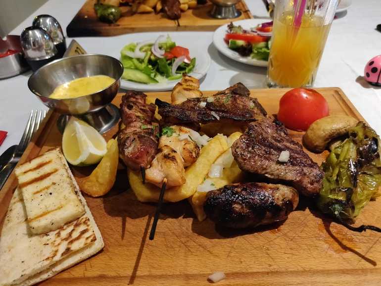 За пределами отеля множество кафе и магазинчиков. Лидл в 5 мин пешком. Несколько раз кушали в кафе,порции огромные