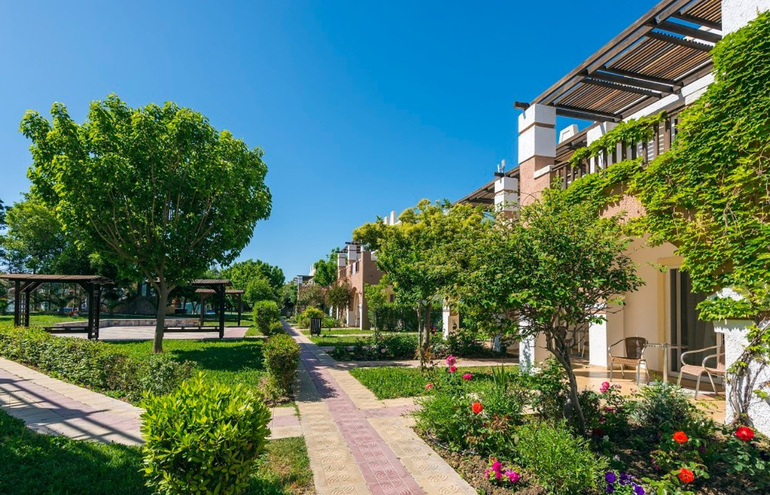Территория отеля шикарная, много цветущих деревьев и цветов, как в парке, есть зоопарк, несколько детских площадок, детские бассейны, мини диско тоже аниматоры проводили, правда мы попали только 1 раз. с Wi-fi дела обстоят не очень, где-то ловит, где-то нет. Для работы сложновато. мы покупали местную симку в Косе, найти очень сложно, но мы смогли) Спрашивали местных.