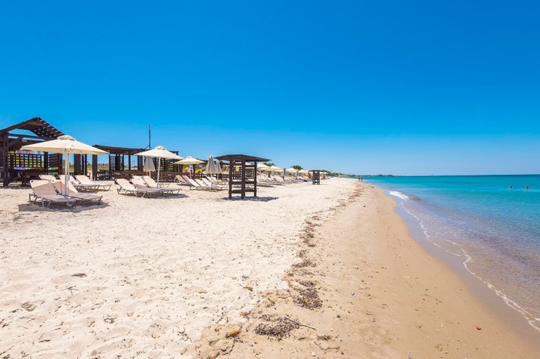 И одно из самых главных достоинств этого отеля - пляж. Длинный, мягкий песок, пологий вход в море..
