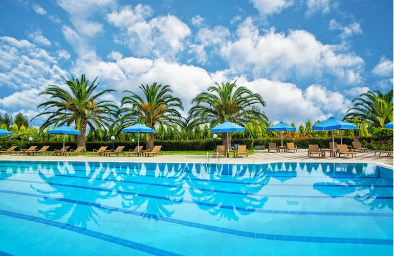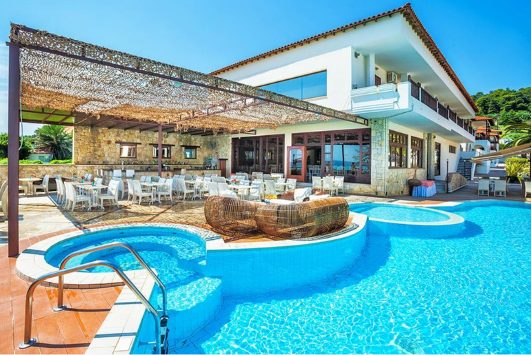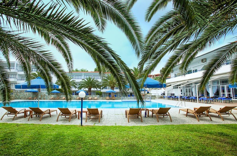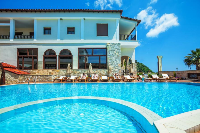 Отель расположен напротив великолепного пляжа, из окон номеров открывается потрясающий вид на Эгейское море и гору Олимп. На п-ве Кассандра (Халкидики) в пос. Посиди, в 92 км от аэропорта г. Салоники.