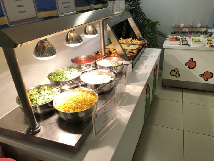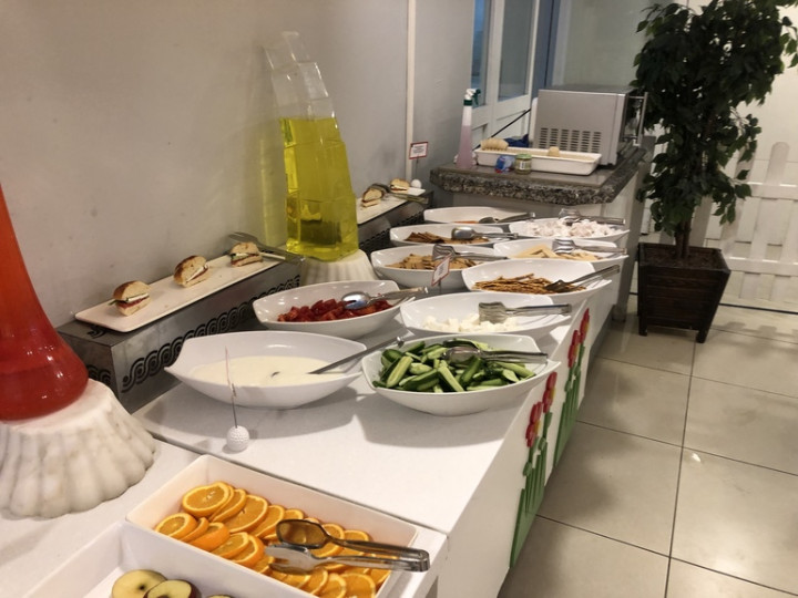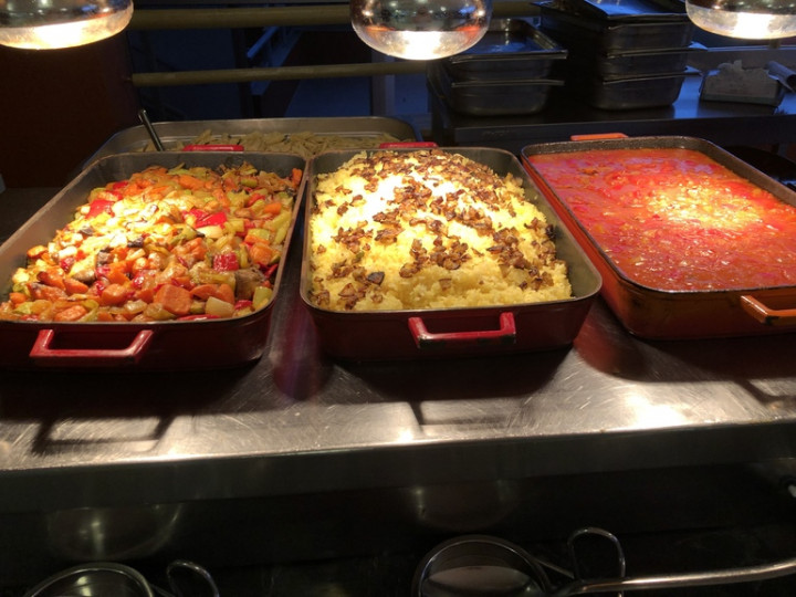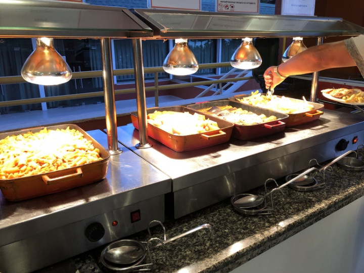 Про завтрак. Йогурты разливные, 2 вида каш (основное условие, что одна на молоке, вторая на воде), блинчики, варёные яйца, овощи, омлет. Рядом недалёко есть всякие сухие хлопья, и в том числе овсянка. Если качество готовой каши не понравилось, вы можете насыпать овсянку сами, добавить молоко и поставить в микроволновку. Приготовить кашу сами.