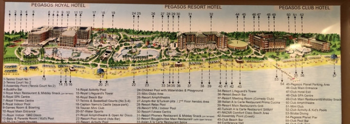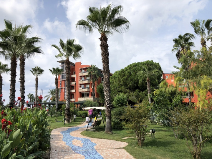 Для начала я буду выкладывать фотографии территории. Она большая, это правда, и вытянула вдоль берега. Каждый Отель оформлен по-своему.