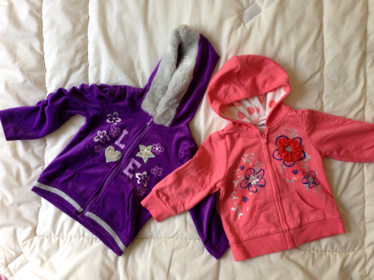 Платье и штаны новые на 12-18 мес, кофты (фиолет. новая, персик. одета 1 раз) на 18-24 мес. Все без этикеток, привезено из США
