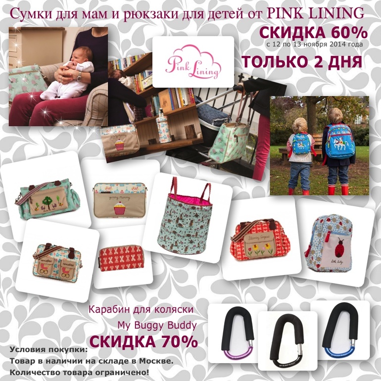 Только сегодня!! Скидка 60% на сумки для мам и рюкзаки для детей от Pink Lining!!!!