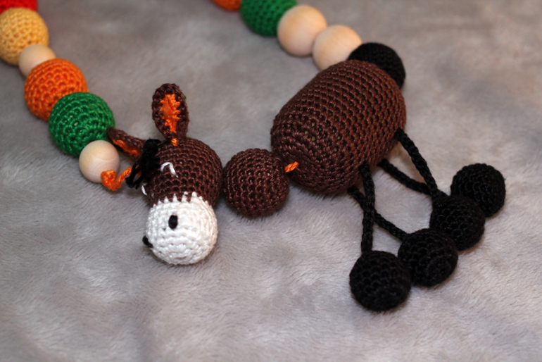Материалы - 100% хлопок, деревянные бусины, погремушки содержат элемент из пластика, обвязанный 100% хлопком.