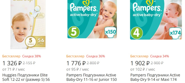 Достаточно интересные цены на некоторые размеры подгузников и на большие упаковки.