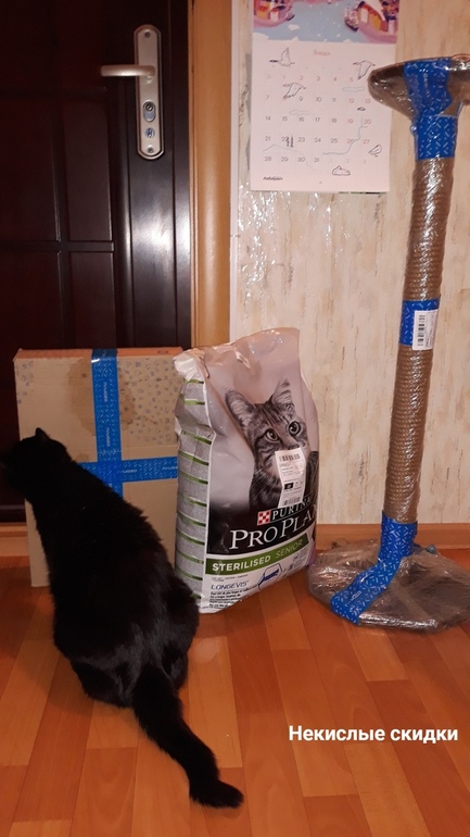 Выжидаю, когда скидка на любимые моими котейками корма появляется, и сразу заказываю. Дядечка-курьер, пыхтя и отдуваясь, затаскивает это всё к нам на 4-ый этаж (без лифта). И сетует, что