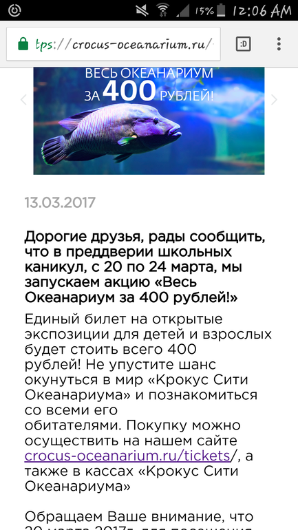 Добрый вечер. А откуда информация? Точно? Зашла на сайт Океанариума- ничего про это не написано.