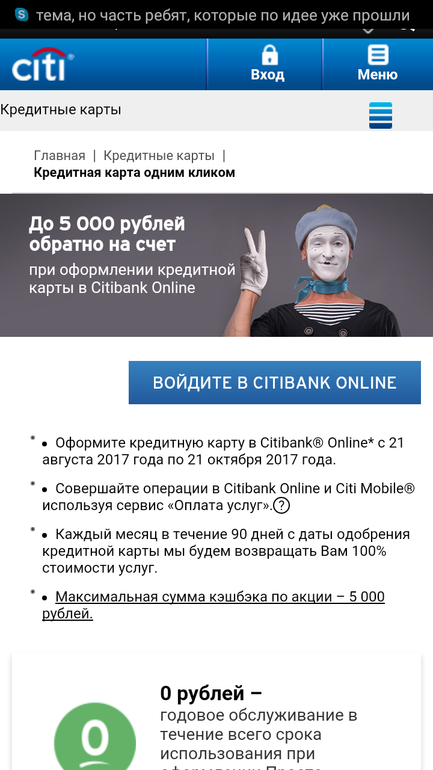 Для любителей кэшбека карта Ситибанка