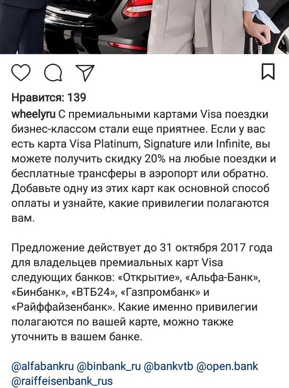 Услуги.. для держателей премиальных карт Signature и Infinite.