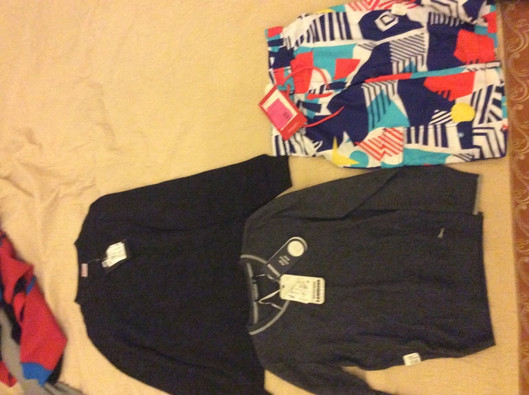 Фото 2: шорты Рейма на вырост (боюсь, что даже не на следующее лето, но вещи с защитой от ультрафиолета ценю и гоняюсь) 509р (уже переоцененные), свитеров для сына неизвестной мне итальянской фирмы luminoso - шерсть(50%)+кашемир(10%)+вискоза , и третья вещь в подарок-термо для меня от guahoo снова из раздела для мальчиков-шерсть с синтетикой 499р. Мама одета, сын одет на годы вперёд))))))