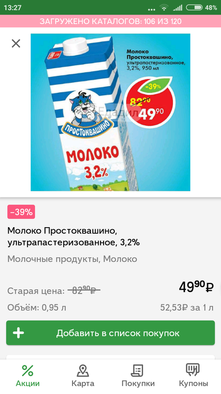 Продукты питанияВ Пятерочке по Акции, минус 30% по купону Простоквашино. Выходит 10.50 руб. (Я купила)