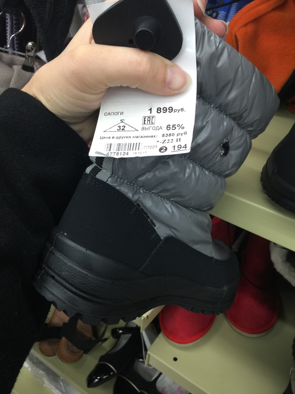 Девочки ,прошу не кидать в меня тапки,но убейте ,не пойму ,неужели кто то в фамилии покупает обувь ???? Цены на дермонтин жуть . Типа угг за такие деньги и даже не пахнут натуральными . У нас есть магазин ,типа одежда для всей семьи ,все с садовода ,так там такая обувь по 700-1200 максимум !!!! Сегодня была и там и в фамилии ,ну просто одно и то же ,но цены разные !!! Да ,согласна ,что в фамилии иногда и Экко и Аляску можно нарыть ,но ,то что на фото ,ну ни разу не натуральные . Щупала лично ....