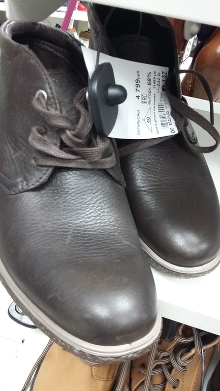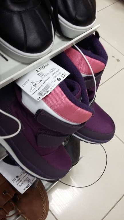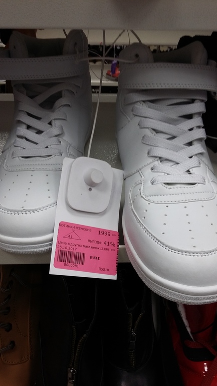 Нашла уцененные кросовочки, мне как раз нужны были. И еще ботиночки или кросовочки, так и не поняла тоже с красным ценником. Но тут на кассе вторые пробили не по красному ценнику, а по коду внутри магнитного жетона или как его называют. Решила стребовать свое право что пробили по ценнику. Позвали администратора, уперлись рогом не отдадим что на прилепленном ценнике ботинки 41р, а у вас кросовки 42. Ладно некогда мне было, хотя я и жалубную книгу просила (не записала в ней т.к. спешила) Тогда я попросила оставить кросовочки и применить к ним код 7% так они его не хотели пробивать т.к. вы типа у нас уже были. На что я сказала что все вопросы в вашу техподдержку. Код я могу с вашем квестом и при вас сгенерировать новый но он будет такой же. У них за это штрафы, интересно почему т.к чек не именной и еслиб кассир была другая это я думаю и не имело бы значение;). Ладно это мне пробили.