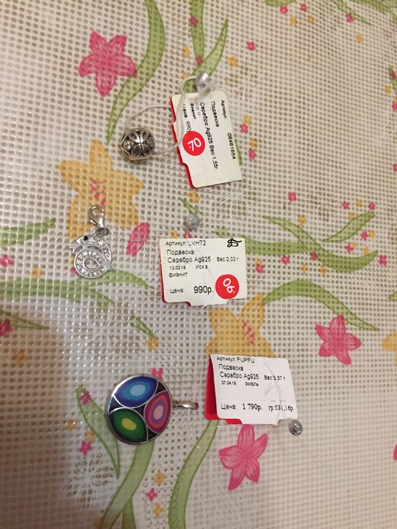 При вопросе что есть со скидками 70 и 90%, девушка продавец опустила глаза и сказала ничего из 90% нет, совсем немного осталось со скидкой 70%. Я при ней открыла приложение и говорю - давайте прямо по компьютеру проверим, приложение указывает наличие у вас вот таких украшений. Нехотя, девушка нашла мне то, что я хотела. 3 украшения были спрятаны под прилавком. Одно со скидкой 90% было прямо у всех на глазах в центре одной из витрин, но на нем отсутствовал указатель о скидке. Я его увидела и попросила проверить на кассе. В итоге купила два шарма (один уже подарила), две подвески. Заплатила за них 872 рубля (до скидки это все стоило бы 4760 р).
