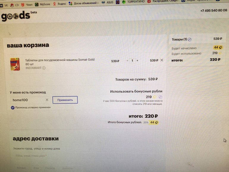 заказала 2 пачки.Итого 440р с доставкой за 160 таблеток)))2 упаковки чтоб доставка 1 р была.списывается и за код(home100) и потом еще минус 50))))Такой цены на таблетки я еще не видела в этой жизни))
